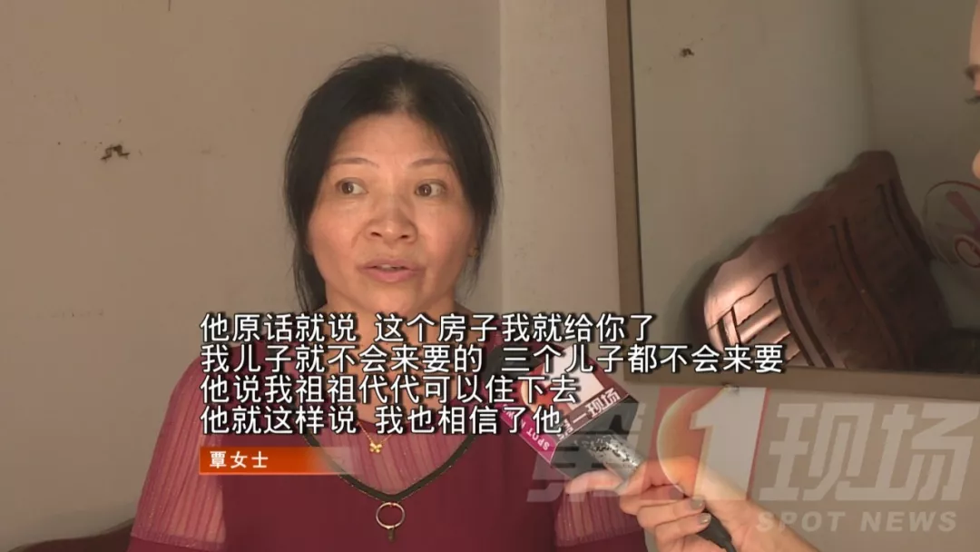 而老人生前留下聲明,房屋所有權歸兒孫,覃女士只有居住權