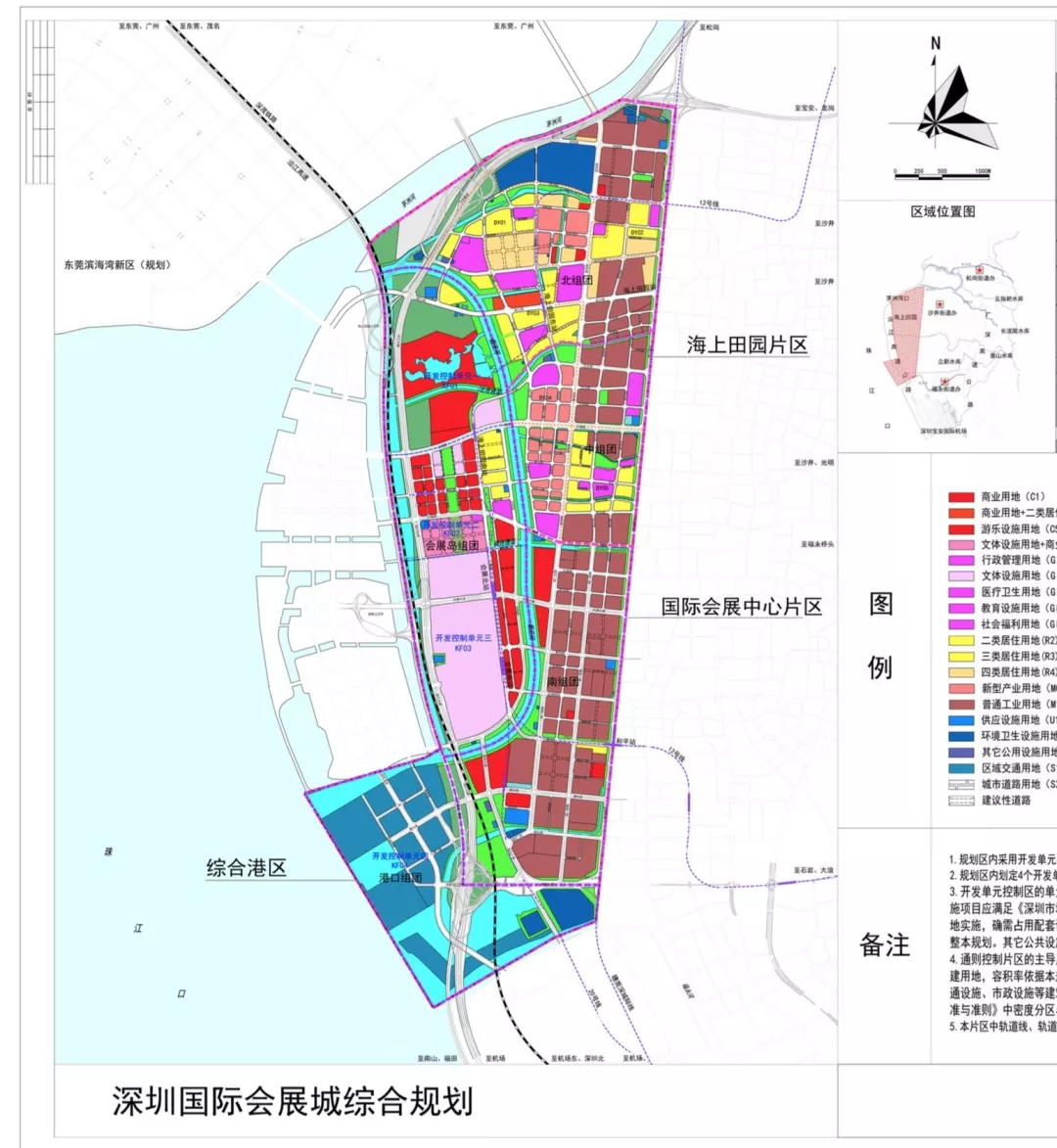 “深圳國際會展城”范圍北抵茅洲河、東至松福大道、南臨福永河、西側(cè)主要以廣深沿江高速公路為界,并包括規(guī)劃寶安綜合港區(qū),范圍共計(jì)22.57平方公里,規(guī)劃區(qū)劃分為三個(gè)片區(qū):國際會展中心片區(qū)、海上田園片區(qū)和寶安綜合港區(qū)。