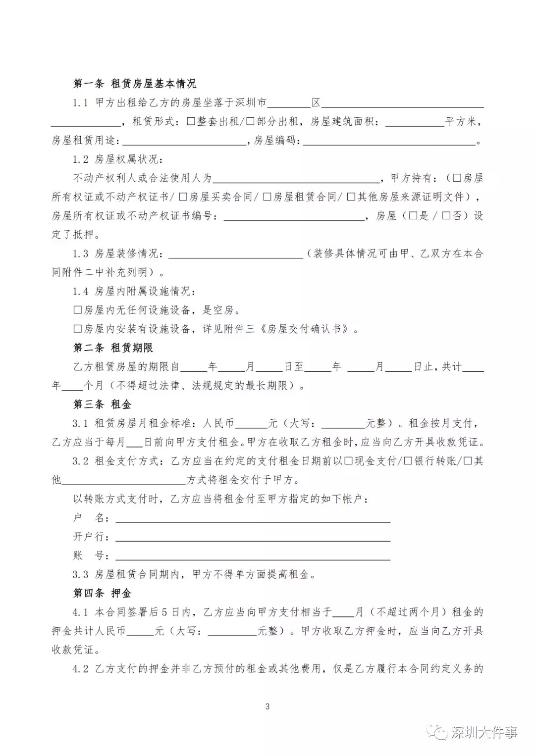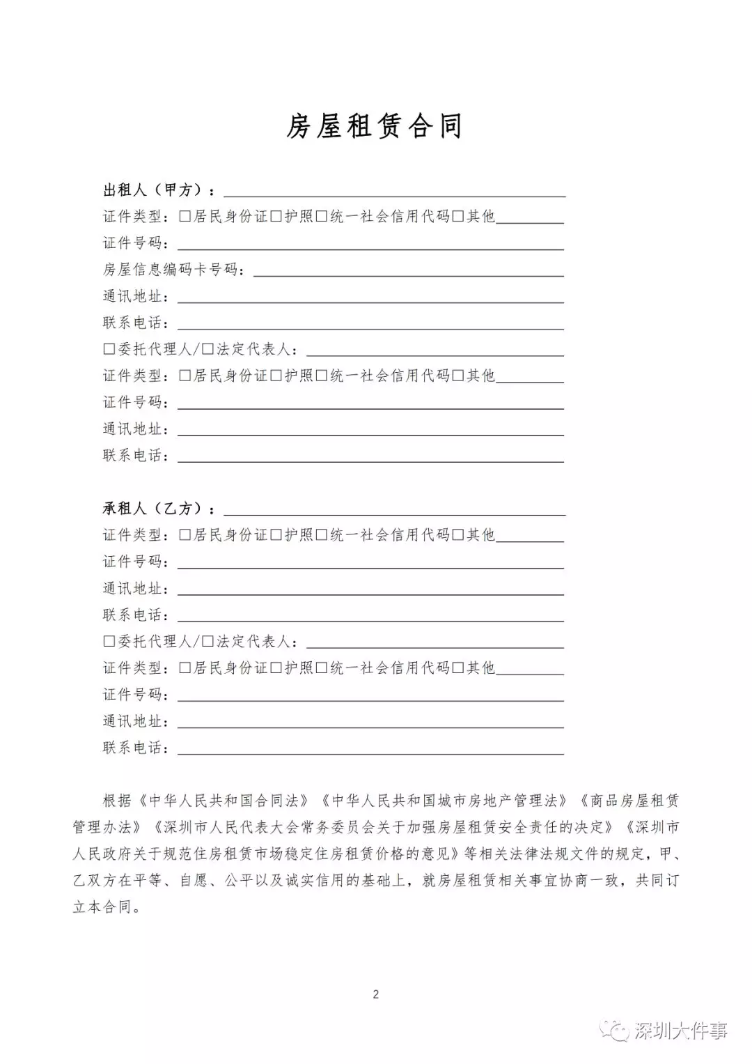 即日起,深圳辦理房屋租賃登記備案手續(xù)將開始使用全新修訂的《深圳市房屋租賃合同》。