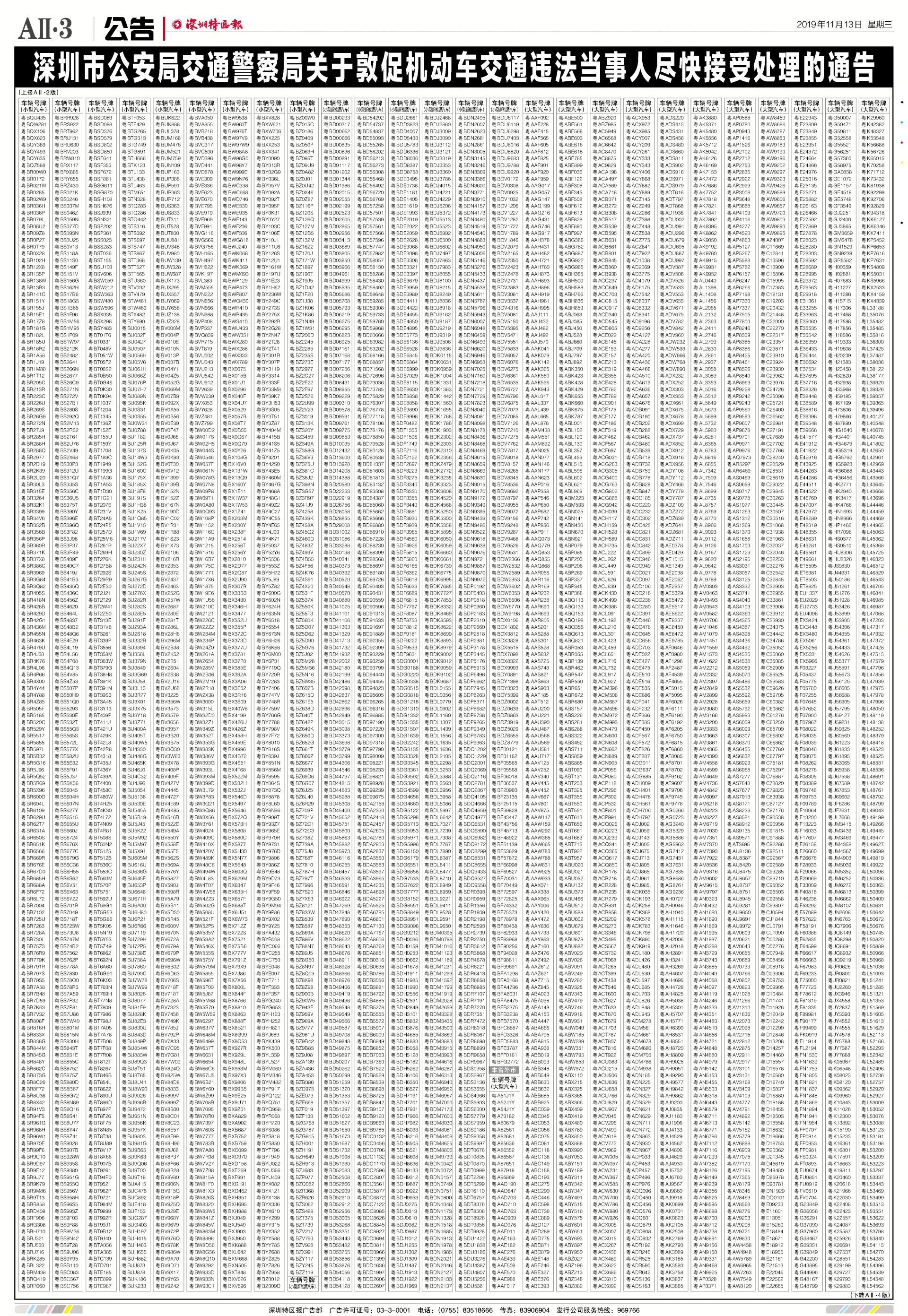 深圳市行駛的機(jī)動(dòng)車(chē)未及時(shí)處理 交通違法將面臨更嚴(yán)處罰