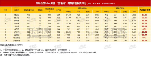 90㎡房子在深圳各區(qū)豪宅稅調(diào)整后減少稅費情況,來自樂有家研究中心