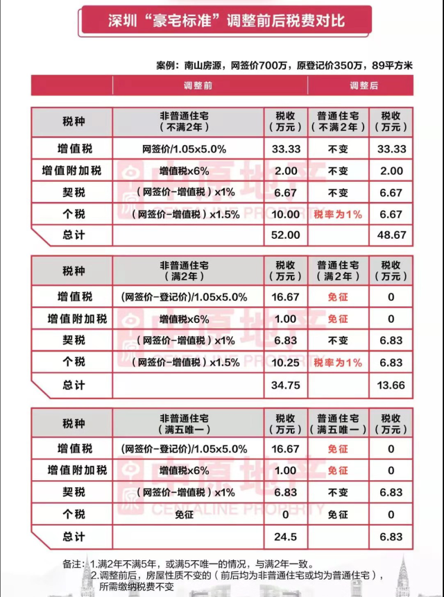 深圳“豪宅標準”調(diào)整前后稅費對比。來自深圳中原研究中心