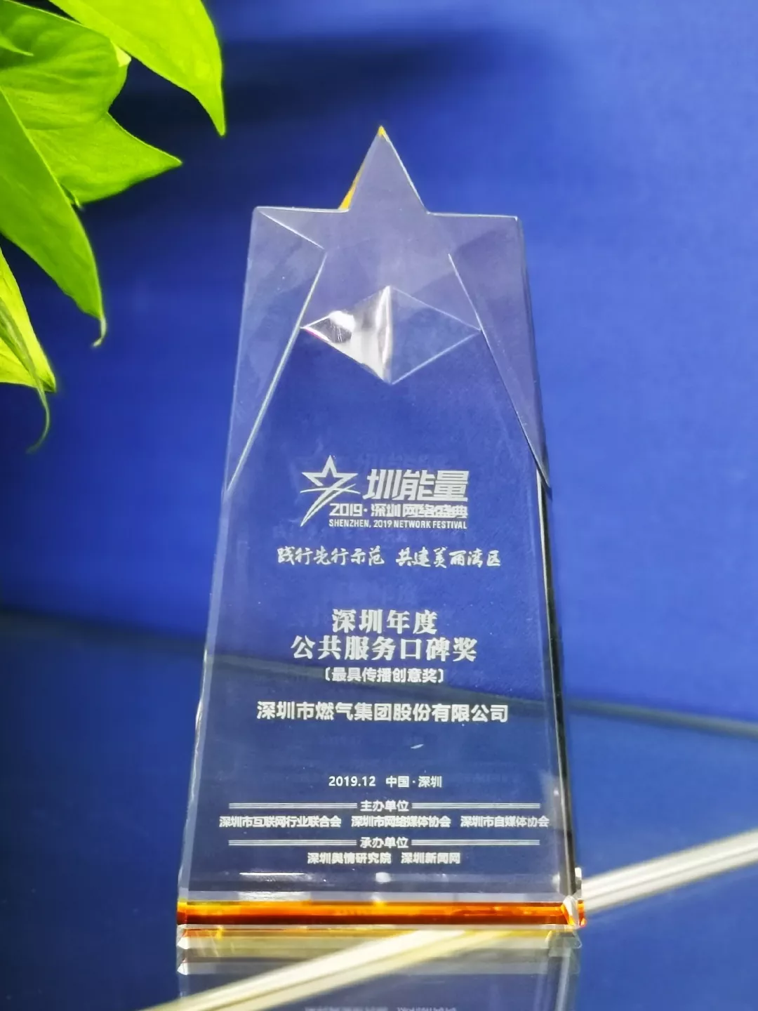 12月5日,“‘圳能量’2019深圳網(wǎng)絡(luò)盛典”在深圳舉行,深圳燃?xì)鈽s獲深圳年度公共服務(wù)口碑獎(jiǎng)之“最具傳播創(chuàng)意獎(jiǎng)”,以表彰其一年來(lái)在民生領(lǐng)域做出的突出貢獻(xiàn)。