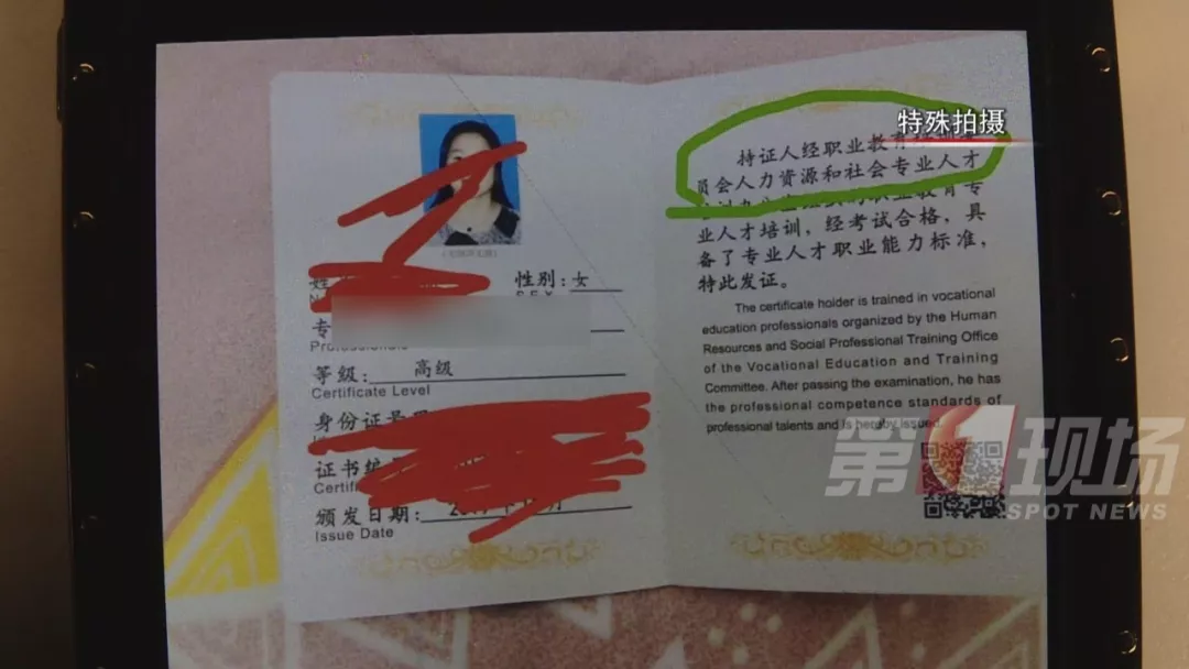 在詢問證書是哪里頒發(fā)時,工作人員說,國內(nèi)其他城市這類證書分初級中級高級,要分別交錢考,她們一步到位,直接發(fā)高級證書,全國通用。