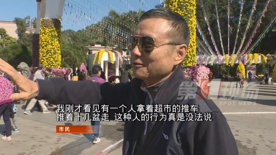 市民說,現(xiàn)場(chǎng)沒有人引導(dǎo),弄得場(chǎng)面如同哄搶,殘花敗葉滿地,實(shí)在太不雅觀,有損形象,甚至有人推了一輛超市的推車,一下搬走了10多盆。