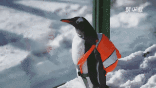 小企鵝背著書包特別興奮,目不轉(zhuǎn)睛地盯著國(guó)寶,敲治愈的!