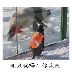 前幾天,一只企鵝坐火車到亞布力景區(qū),和兩只大熊貓“面基”。