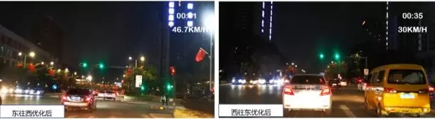 西鄉(xiāng)大道與前進(jìn)二路口夜間信號燈優(yōu)化前后對比