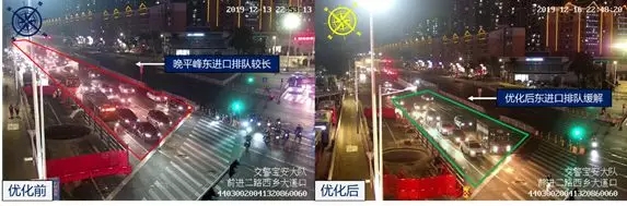 西鄉(xiāng)大道與前進(jìn)二路口夜間信號燈優(yōu)化前后對比