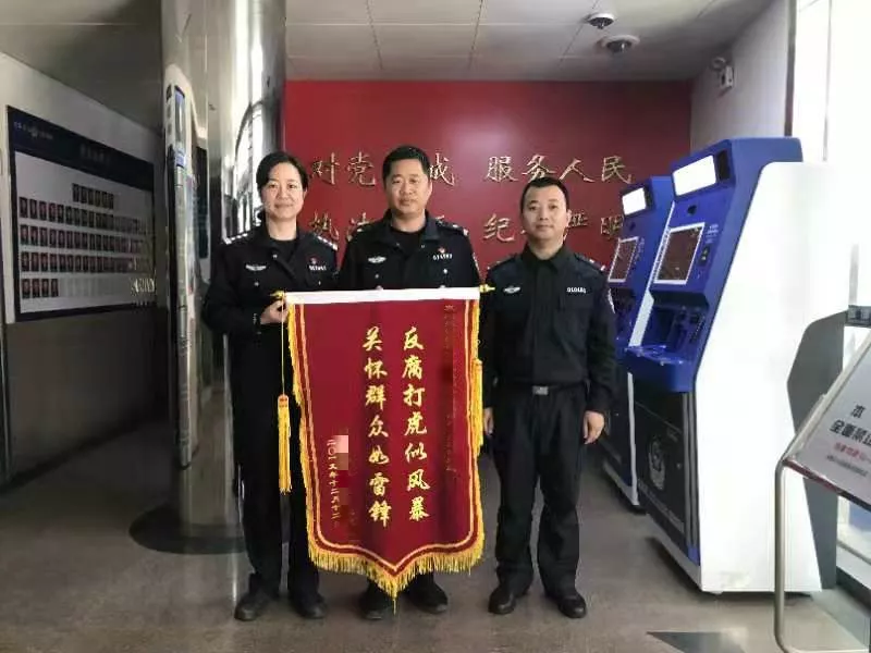 近日,順利回家的程先生為了感謝景田派出所給予的幫助,特地快遞送了一封感謝信及寫(xiě)著“反腐打虎似風(fēng)暴關(guān)懷群眾如雷鋒”的錦旗到派出所表達(dá)謝意。