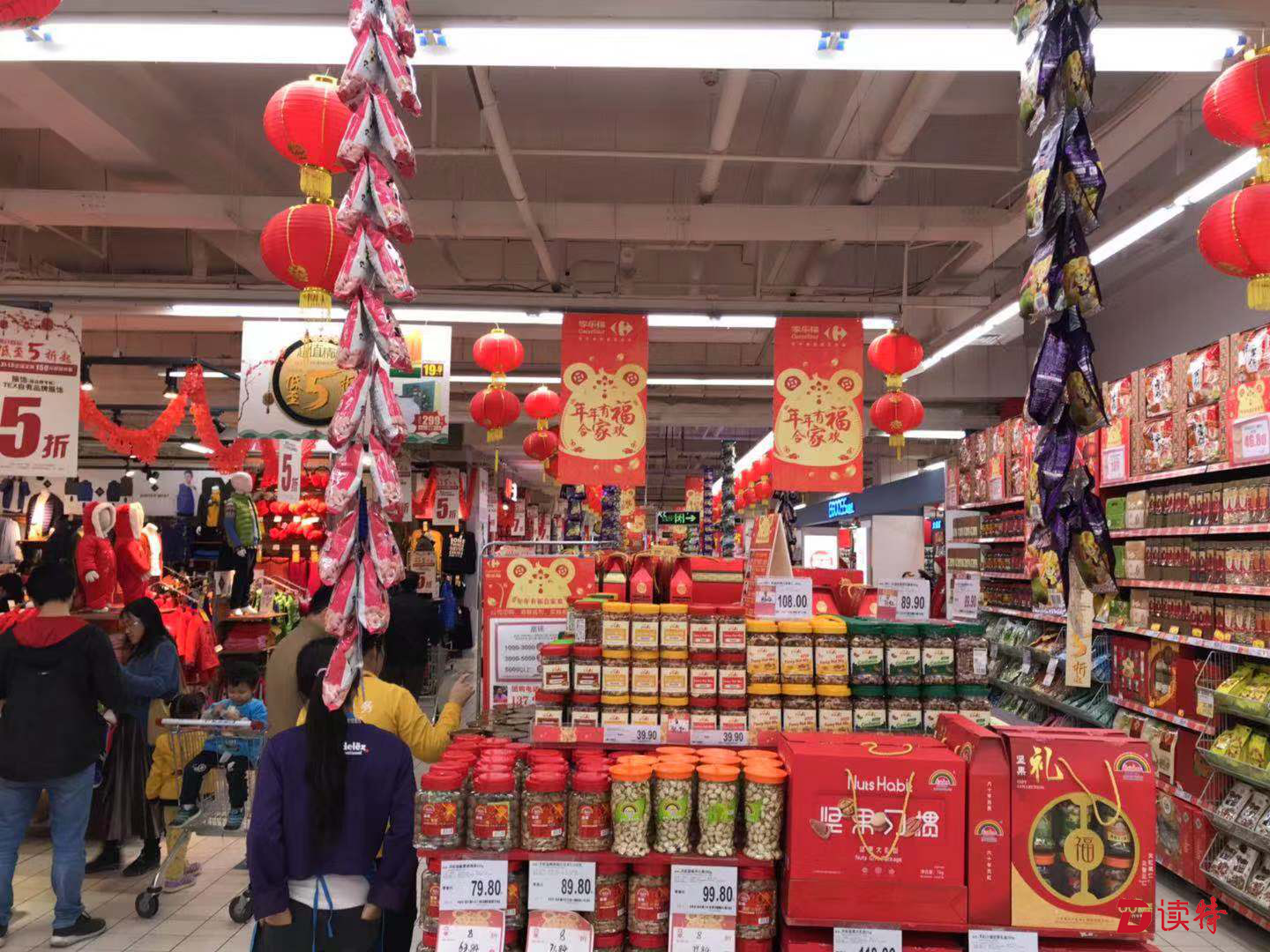記者在華潤萬家、沃爾瑪、家樂福等商超門店看到,干果飲料、糖果餅干、酒水等各式各樣的年貨禮盒禮包被整齊擺放在顯眼位置,并標貼著優(yōu)惠價簽;年貨街以及春聯(lián)、中國結、紅燈籠等春節(jié)飾品區(qū)等購物場景一一上線,干貨、腌制食品等熱門年貨也加入了促銷陣營;“恭喜發(fā)財”等新春標配曲目已在某商超開始播放,讓人可以感受鼠年春節(jié)將至的氛圍。