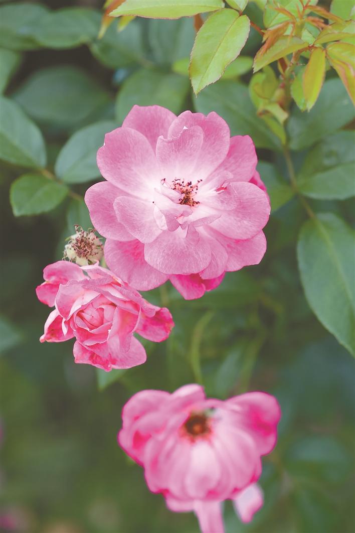 人民公園月季花展吸引眾多市民賞花。