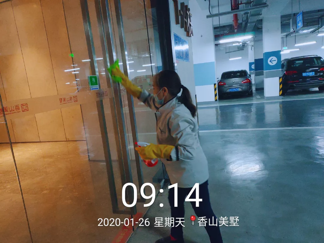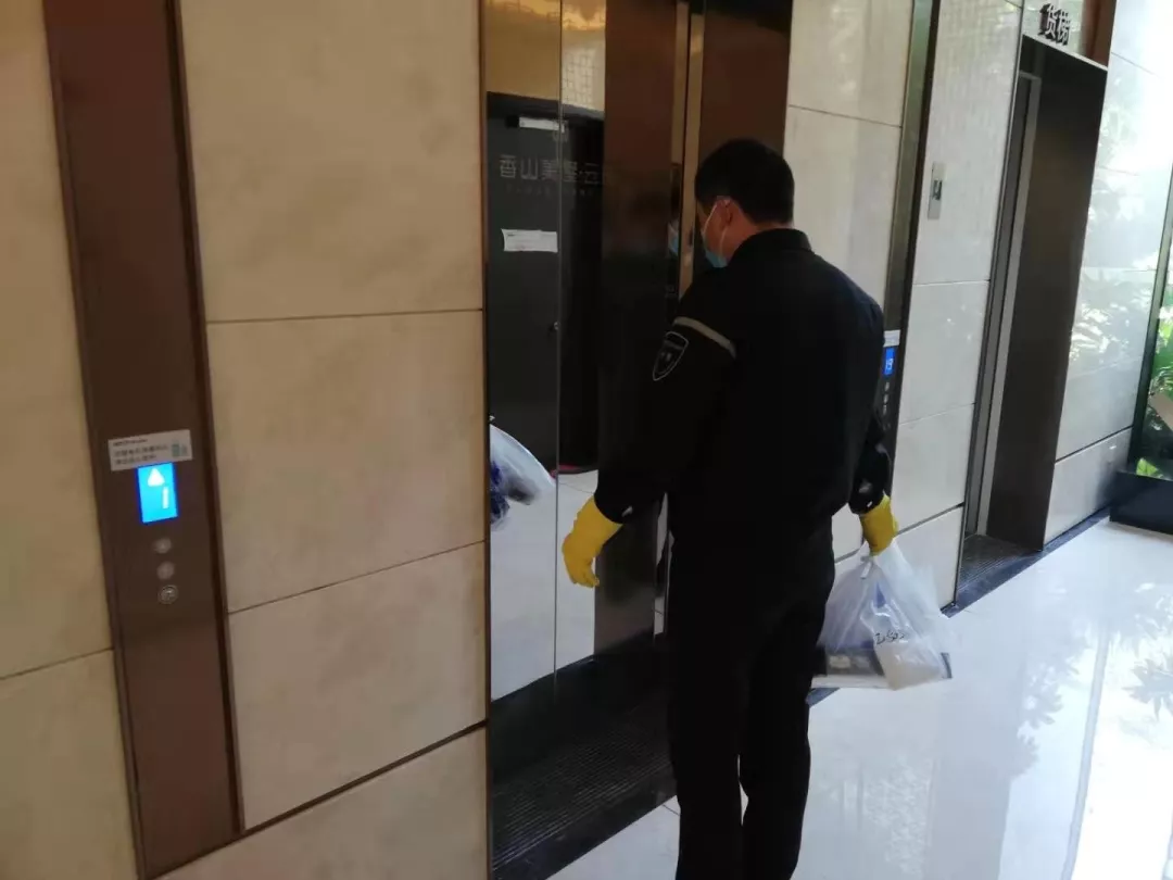 每天對小區(qū)公共區(qū)域大堂門把手、門禁對講機、電梯按鍵、大堂茶幾沙發(fā)等高頻接觸區(qū)進行消毒及對轎廂按鈕定時更換保鮮貼膜。
