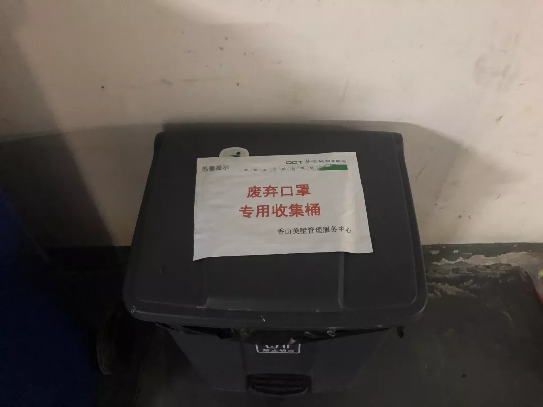 為防止廢棄口罩造成二次污染,管理服務(wù)中心在每棟樓宇垃圾集中收集點處,增設(shè)了“廢棄口罩專用收集桶”規(guī)范處理廢棄口罩;并要求工作人員每天對收集桶消毒加強防護。