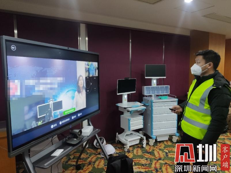 1月31日晚,經(jīng)過半天緊急協(xié)調(diào)和安裝,遠(yuǎn)程會(huì)診系統(tǒng)調(diào)通 (華為供圖)