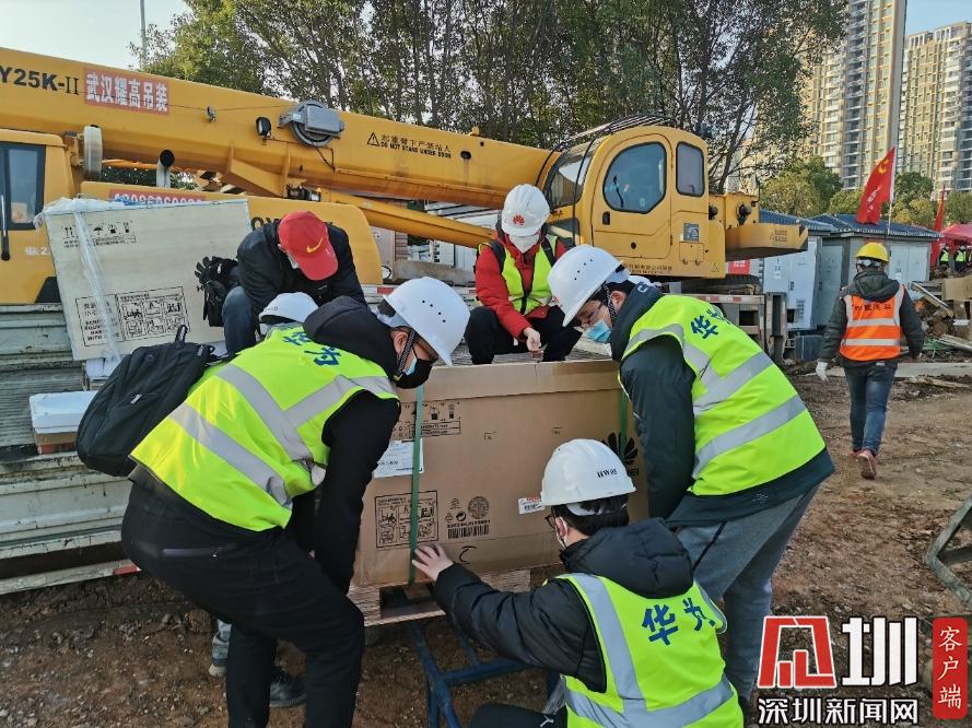 1月31日下午,華為網(wǎng)絡(luò)、視頻會(huì)議等設(shè)備緊急運(yùn)輸進(jìn)場(chǎng),準(zhǔn)備施工調(diào)測(cè) 。 (華為供圖)