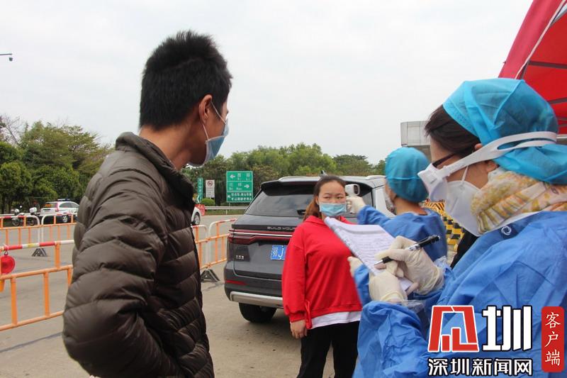 據(jù)了解,今年春節(jié)約有1500萬人離深返鄉(xiāng),目前已有500萬人回到深圳,還有近1000萬人將返回深圳。2日下午,記者在現(xiàn)場看到,南頭收費(fèi)站僅開放了三條車道。每條車道分別設(shè)有2名志愿者,一名負(fù)責(zé)協(xié)助交警測量體溫,并檢查車內(nèi)乘載人數(shù),另一名負(fù)責(zé)登記車輛及人員信息。