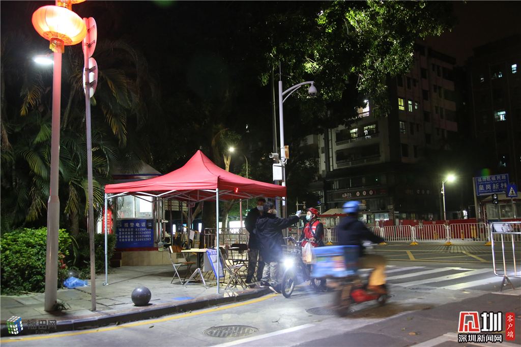 97年出生的胡規(guī)負責皇崗村的南崗亭1年多了,“附近居民都喜歡來皇崗村吃宵夜,熱鬧的時候有好幾千人,現(xiàn)在每天都不足百人。人雖少了,但是安保工作并沒有因此松懈下來,現(xiàn)在最重要的是防疫”。胡歸告訴記者,一次晚上值班站崗給進出的居民監(jiān)測體溫,一位阿姨從旁邊經(jīng)過,特地走過來給我鞠了一躬。當時心里特別暖,覺得自己的勞動獲得了別人的尊重。”