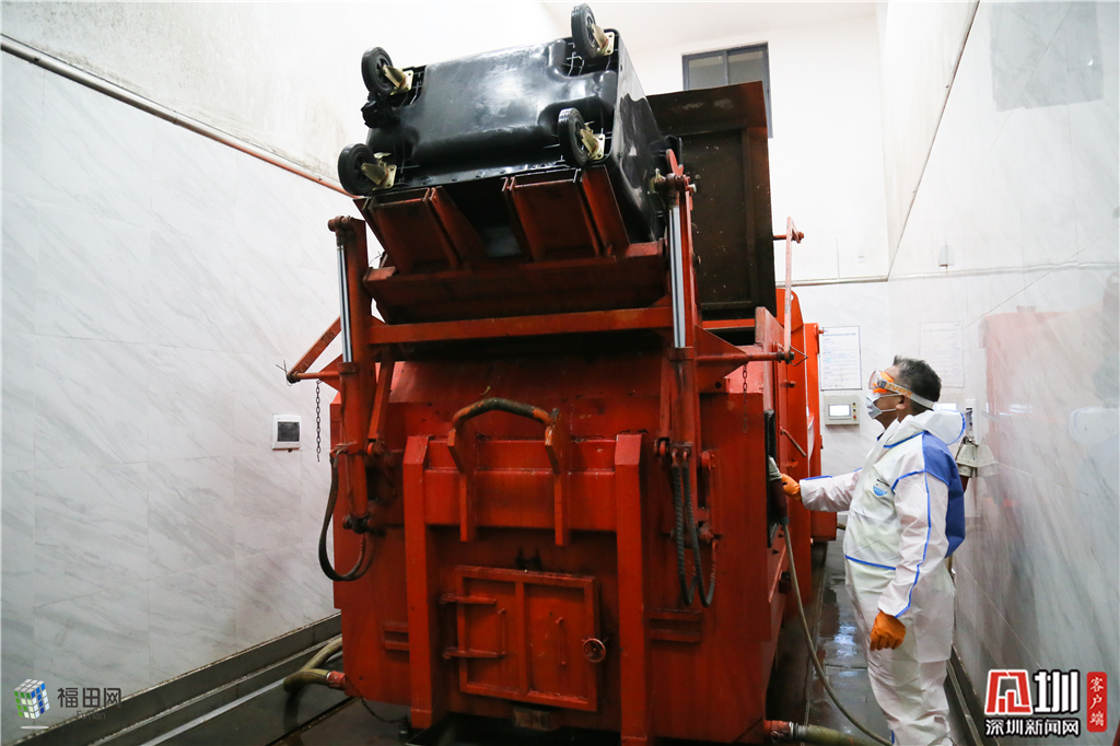 現(xiàn)代化城市生活固然便捷,但是也制造巨量的生活垃圾。垃圾清運人員凌晨3點半起床后開始準備一天的工作。這段時間,轉運站配置1:250的高濃度消毒液,一桶消毒液夠用一個垃圾轉運站。記者看到,電動垃圾轉運車上的四個環(huán)衛(wèi)消殺工作人員穿著厚厚的白藍色隔離服,全副武裝迎接來自轄區(qū)源源不斷運過來的垃圾桶,隨著垃圾轉運車后滋滋作響的電流聲,車后的平板放下來了,一桶桶垃圾平穩(wěn)有序的拽拉進垃圾轉運站進行壓縮,因工作服的關系,工作人員眼罩上經(jīng)常被一層厚厚的水霧糊上,工作期間會把手套摘除后,從手心處甩出一把把汗。