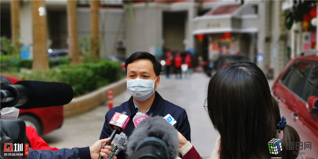 2月9日下午,記者來到梅林街道山水居小區(qū)實(shí)地探訪。進(jìn)入小區(qū)前,所有進(jìn)出人員都必須量體溫,正好來此調(diào)研的福田區(qū)委副書記黃曉鵬也不例外。