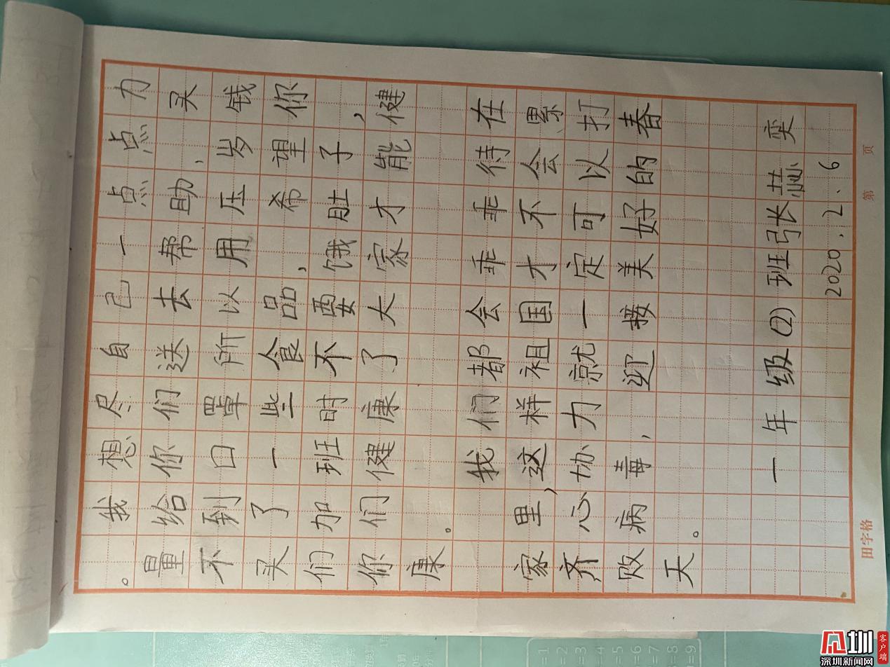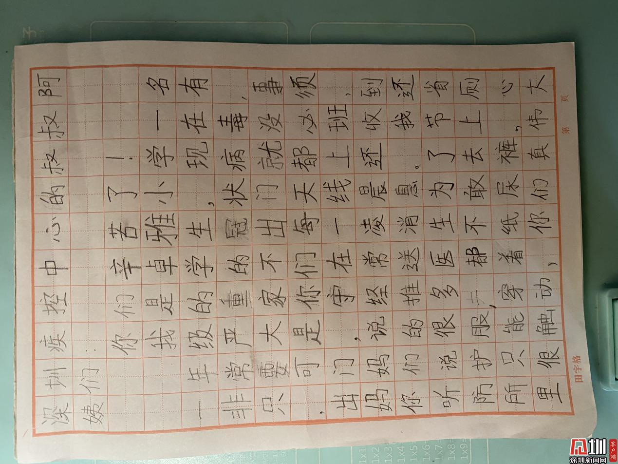 張赫奕小朋友寫給深圳疾控叔叔阿姨們的慰問(wèn)信