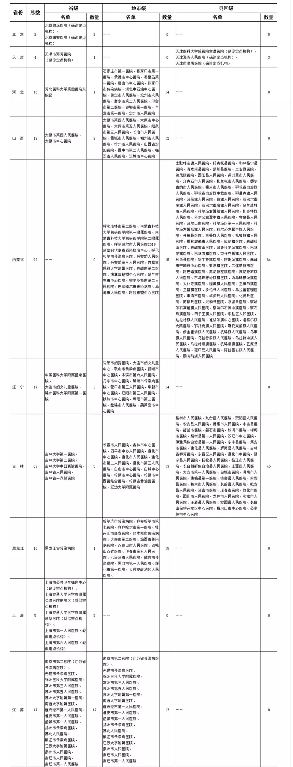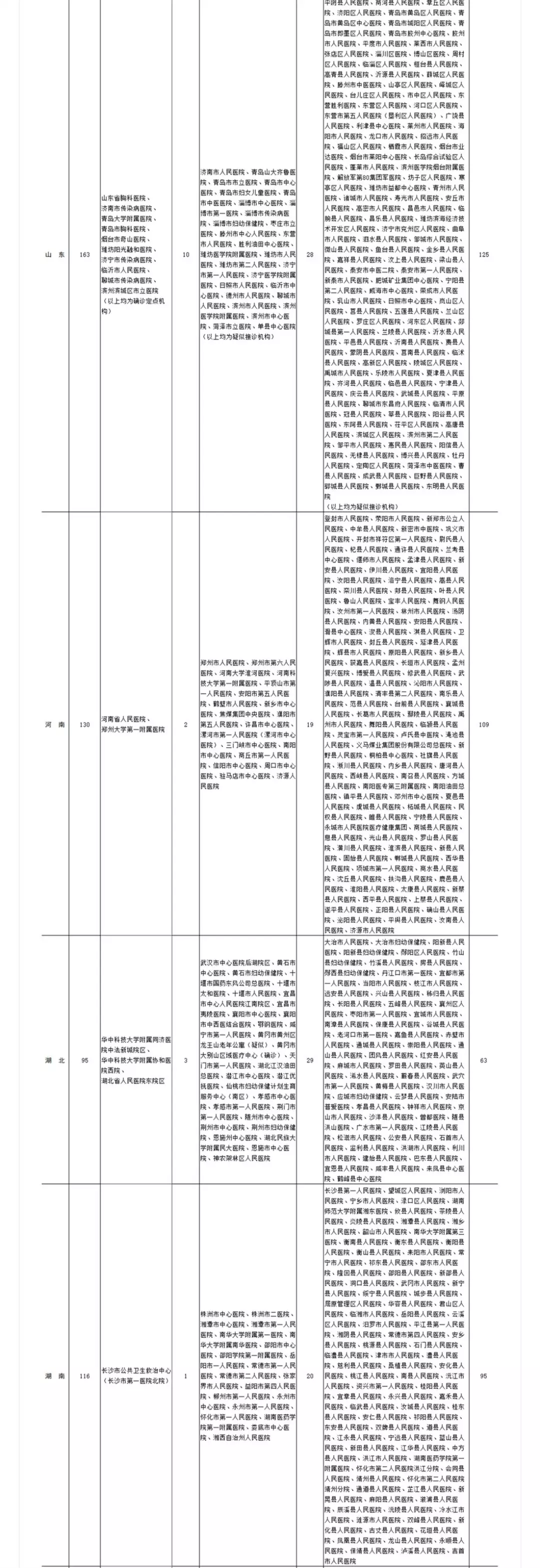 各?。▍^(qū)、市)新型冠狀病毒感染疑似或確診孕產(chǎn)婦產(chǎn)檢和住院分娩定點(diǎn)醫(yī)院(截至2020年2月11日)