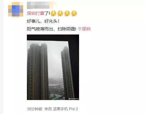深圳今天大雨,還有雷暴,