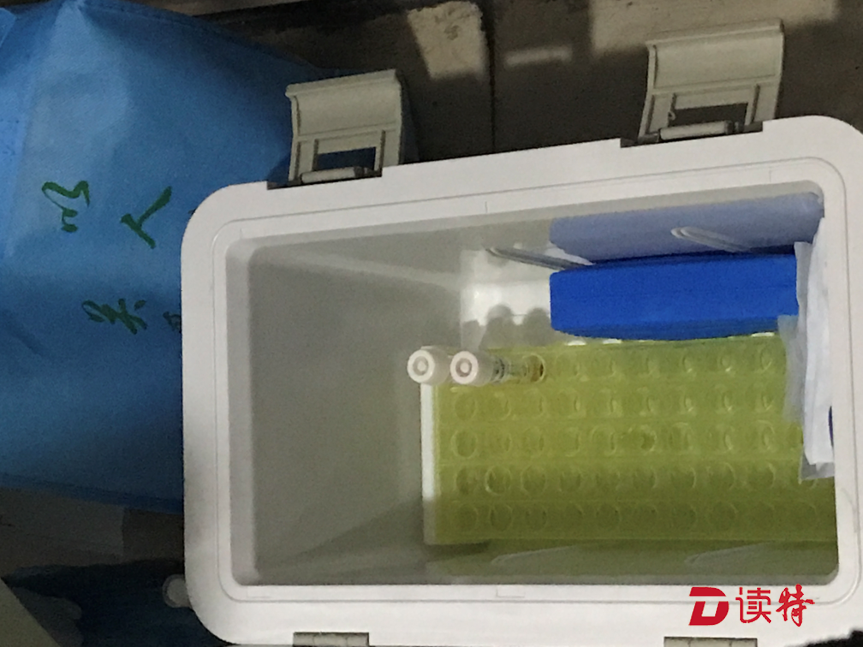 據(jù)了解,為了增加采樣的準確性,每個醫(yī)學觀察居民均采用咽部和鼻腔分別取樣。醫(yī)護人員先用一個咽拭子在孫女士的咽喉內(nèi)部輕輕擦拭,另一個鼻拭子在鼻道內(nèi)鼻腭處轉(zhuǎn)動,然后將拭子放入貼有標簽的樣本管內(nèi)。完成操作后,三位工作人員更換手套,為孫女士的愛人和孩子完成了采樣,采集的樣品被放入了工作人員隨身攜帶的“送檢專用箱”中。