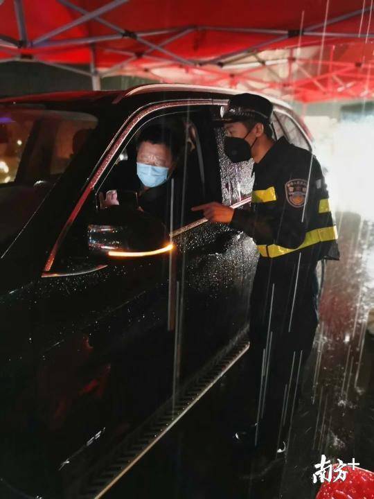 坪地街道黨工委書記曾憲旺冒雨夜巡檢查點(diǎn),了解當(dāng)日車流量以及重點(diǎn)區(qū)域人員返深情況,同時(shí)慰問一線執(zhí)勤人員及志愿者。