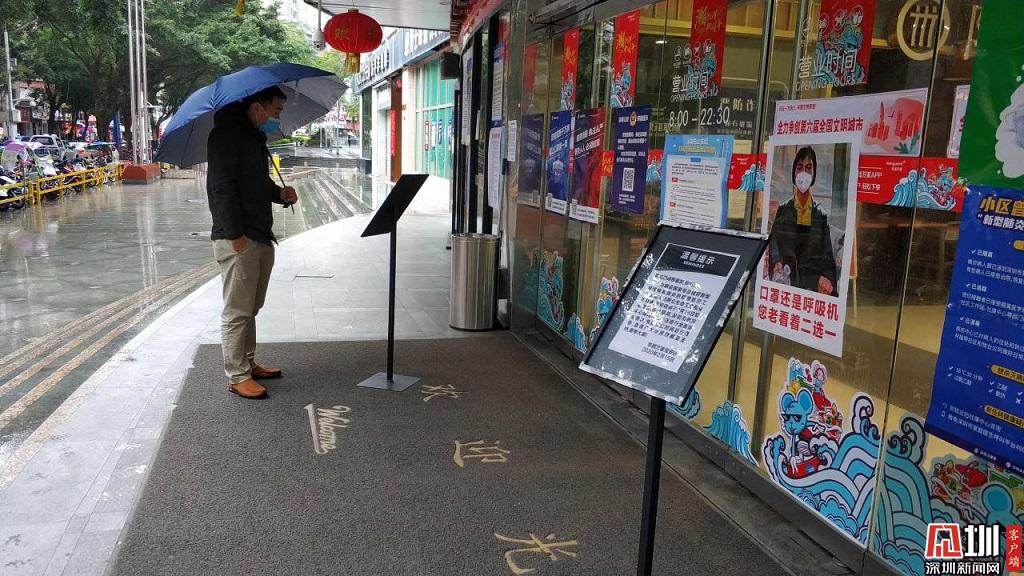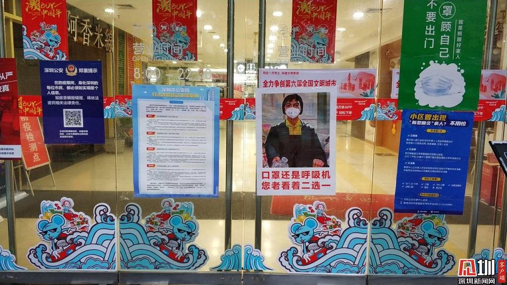 華潤萬家寶安店門口張貼的溫馨提示。