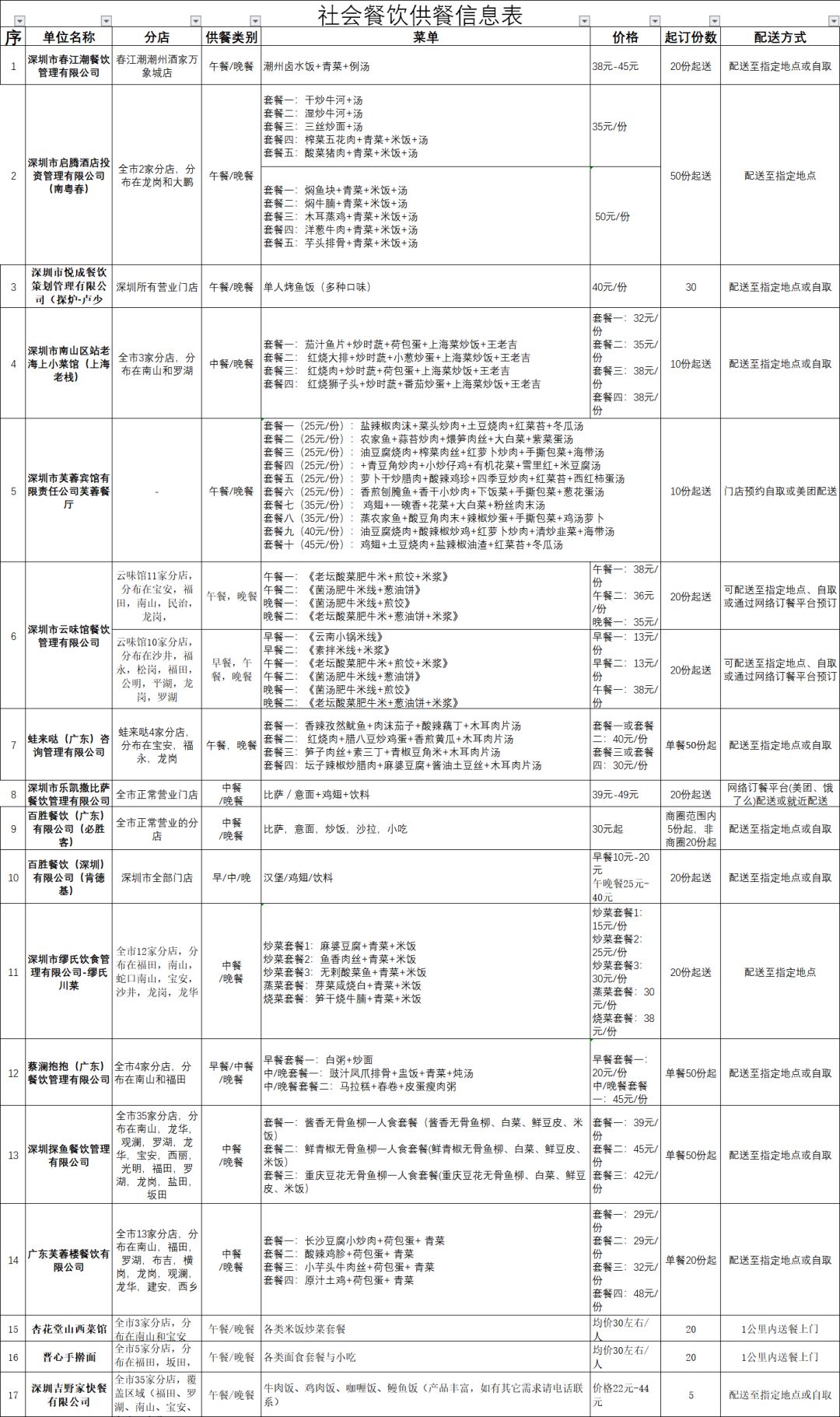 為了保障復工后集體用餐的安全,深圳市市場監(jiān)督管理局協(xié)調了安全的訂餐渠道,目前已經有79家供餐單位!