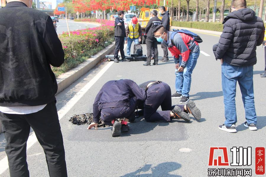 2020年2月18日9點(diǎn)40分,市交通運(yùn)輸局福田管理局養(yǎng)護(hù)巡查發(fā)現(xiàn)深南大道西行輔道市民廣場(chǎng)門(mén)口路段出現(xiàn)路面塌陷,塌陷空洞面積約5~6㎡,深度約1.5~2.0米。我局第一時(shí)間上報(bào)區(qū)地防辦并趕赴現(xiàn)場(chǎng)做好安全圍擋工作,確保車輛和市民出行安全。同時(shí),區(qū)地防辦牽頭我局、交警、水務(wù)、地鐵等部門(mén)進(jìn)行現(xiàn)場(chǎng)勘察,查找地陷原因。經(jīng)勘察,該處位于地鐵2號(hào)線上方,周邊地下管道完好,該輔道路段約有40~50米路基土疏松,塌陷原因是該路段地下工程施工對(duì)地基擾動(dòng)且回填土未夯實(shí)。