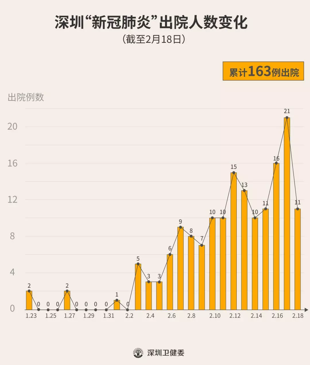 2月18日下午,經專家組會診,深圳再有11名新型冠狀病毒肺炎確診患者出院,累計達163人,連續(xù)16天有人出院。