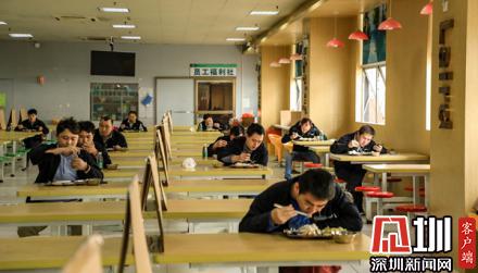 記者了解到,為了減少擁擠,生產(chǎn)車間員工400余人被分成了5個批次,每個批次20分鐘,輪流就餐。