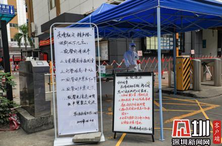 園區(qū)內(nèi)多處擺放有手寫版的防疫溫馨提示
