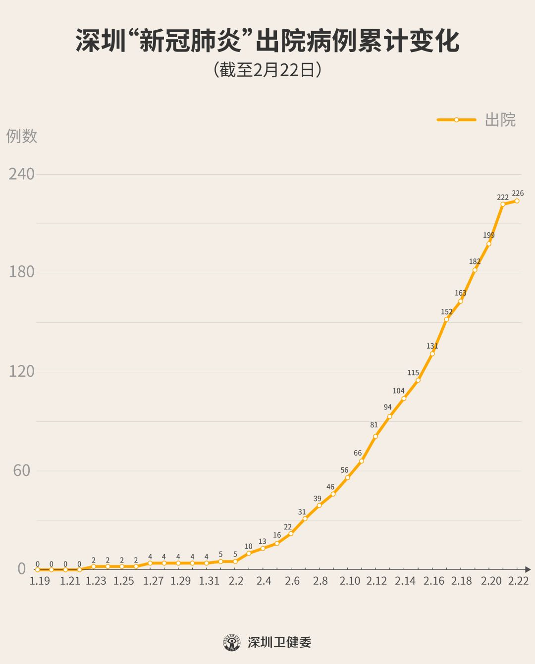 2月22日下午,經(jīng)專家組會(huì)診,深圳再有4名新型冠狀病毒肺炎確診患者出院,累計(jì)達(dá)226人,連續(xù)20天有人出院。
