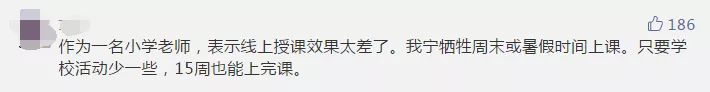 一位小學(xué)老師也直言:線上授課效果太差了,寧愿犧牲周末或暑假時間上課。