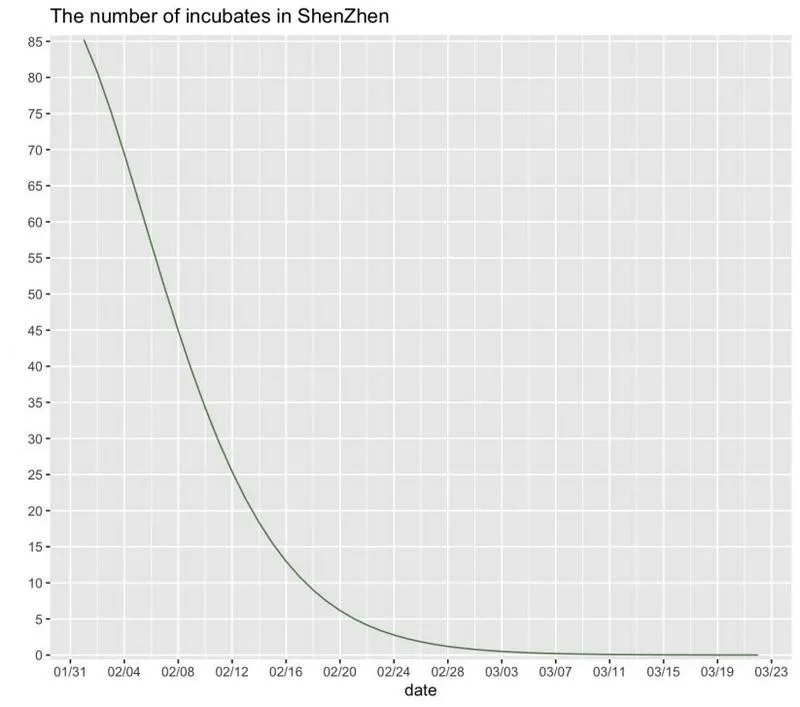 而通過模擬深圳新冠肺炎每日的潛伏者數(shù)量可以看出,2月份以來每日的潛伏者數(shù)量在持續(xù)下降,2月18日已降至個位數(shù),到3月初時潛伏者將基本清零。說明在一系列的防控措施下將病毒傳染的途徑嚴(yán)格控制,很好地防止了病毒的擴散。