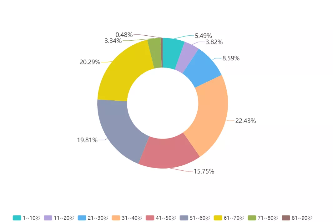 ▲新冠肺炎患者以中老年人為主,年齡在50歲以上的患者占到了總數(shù)的43.92%。但也應(yīng)注意到,10歲以下的兒童確診人數(shù)達(dá)23人,青少年同樣存在感染風(fēng)險(xiǎn)。