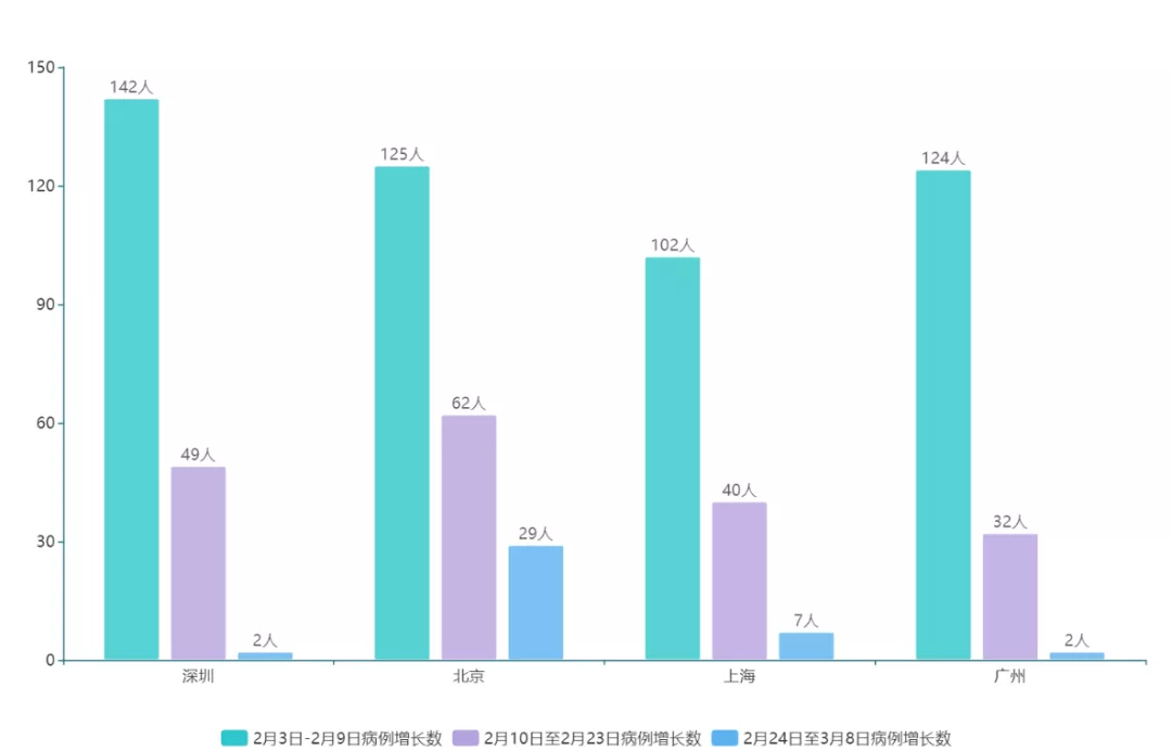 圖25北上廣深2月3日至3月8日新增確診病例數(shù)對(duì)比圖