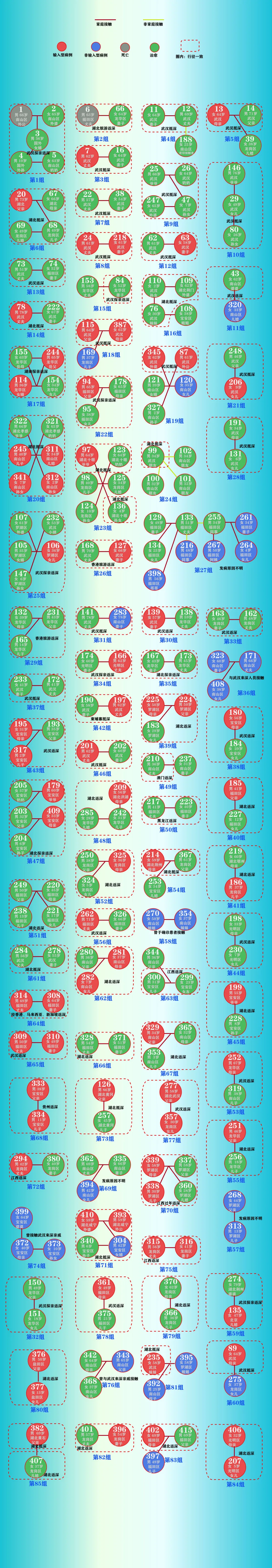 ▲多數(shù)聚集性病例以家庭聚集為主,共涉及85組病例,單個(gè)家庭確診2至3人,最多的一個(gè)家庭確診7人??梢?jiàn),在基層社區(qū)防疫力度較強(qiáng)的情況下,疫情擴(kuò)散風(fēng)險(xiǎn)較小。但是,家庭防疫存在諸多困難,親屬間傳染風(fēng)險(xiǎn)極大。