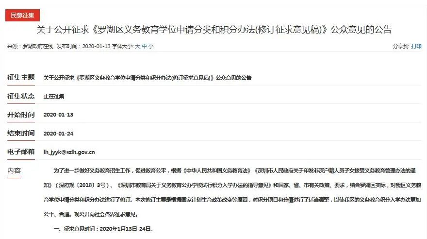 羅湖區(qū)在1月13日發(fā)布了《羅湖區(qū)義務(wù)教育學(xué)位申請(qǐng)分類(lèi)和積分辦法(修訂征求意見(jiàn)稿)》向市民征求意見(jiàn)。