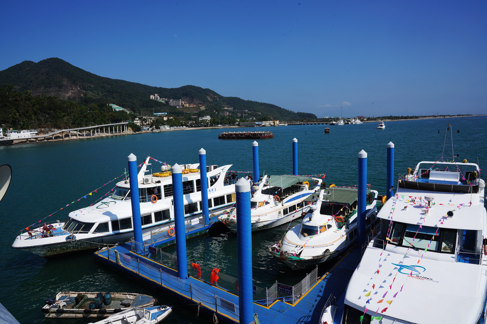 停靠在鹽田金色海岸碼頭處運(yùn)營(yíng)游船。韋建誠(chéng)攝