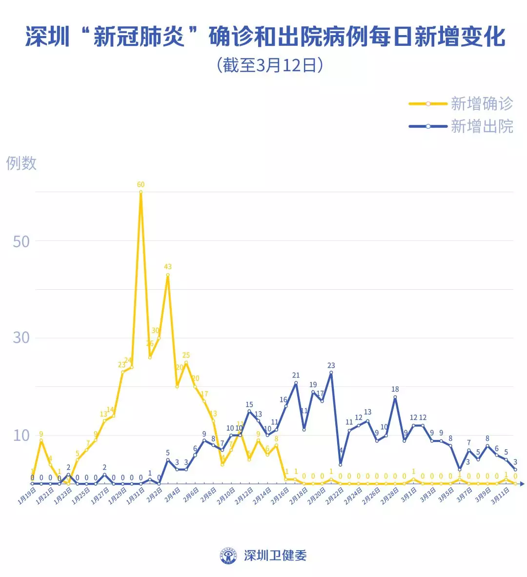 截至3月12日24時,深圳累計報告“新冠肺炎”確診病例420例。3月12日當天全市無新增確診病例,當天出院病例3例。