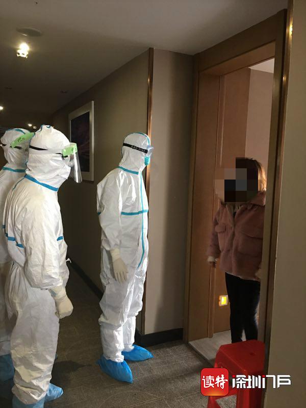 醫(yī)療隊員在留置觀察點對留觀人員進(jìn)行回訪。 深圳醫(yī)療隊供圖