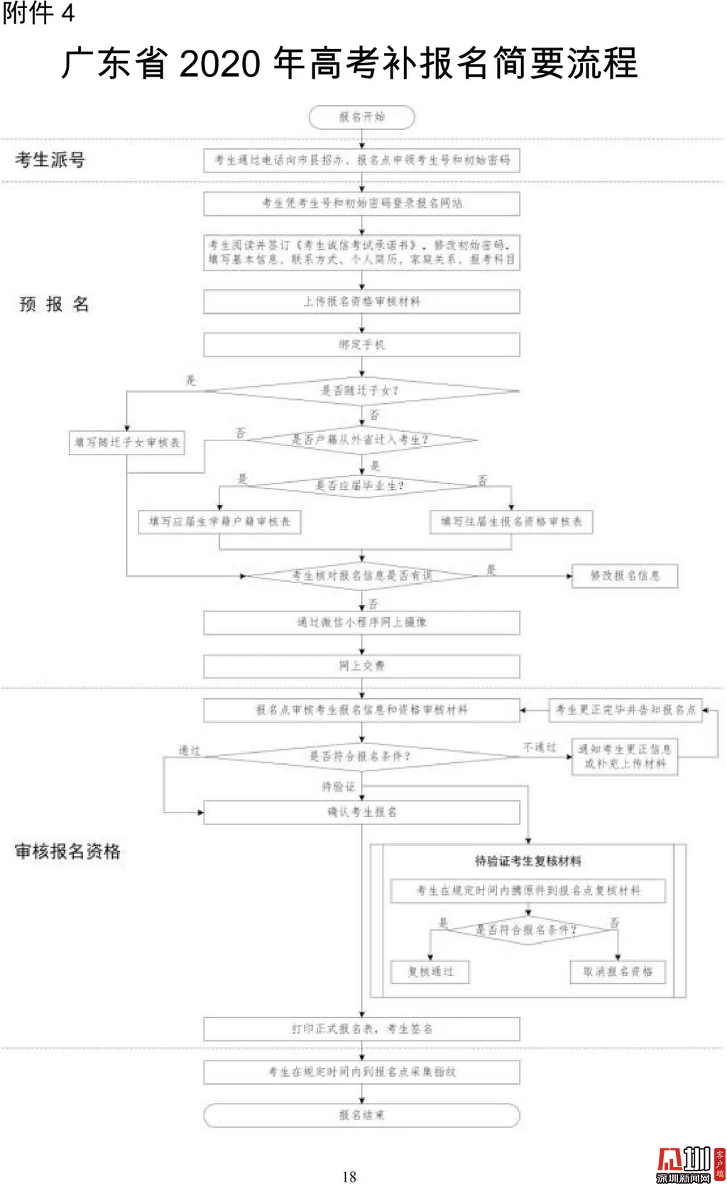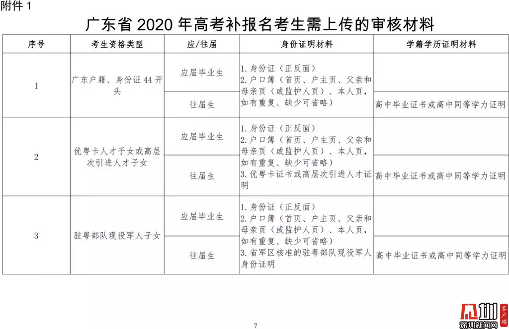 見圳客戶端·深圳新聞網(wǎng)2020年3月19日訊(見圳客戶端、深圳新聞網(wǎng)記者 金洪竹)3月18日,記者從廣東省招生委員會辦公室獲悉,為滿足退伍軍人、運動訓(xùn)練及武術(shù)與民族傳統(tǒng)體育考生、高職院校自主招生考生等符合我省高考條件,因各種原因尚未參加高考報名人員的需求,經(jīng)研究決定安排一次高考補(bǔ)報名,補(bǔ)報名時間為3月23-26日。同時,為確??忌涂荚嚬ぷ魅藛T的生命安全和身體健康,減少聚集,本次高考補(bǔ)報名采取先線上辦理、后補(bǔ)驗材料的方式進(jìn)行。
