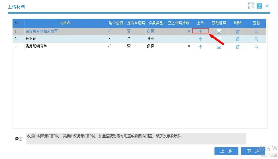 填寫信息上傳材料,如醫(yī)療費用收據(jù)或發(fā)票、身份證、費用明細清單等。(系統(tǒng)將自動比對參保情況、費用發(fā)生時間、個人賬戶余額、基金額度等信息)
