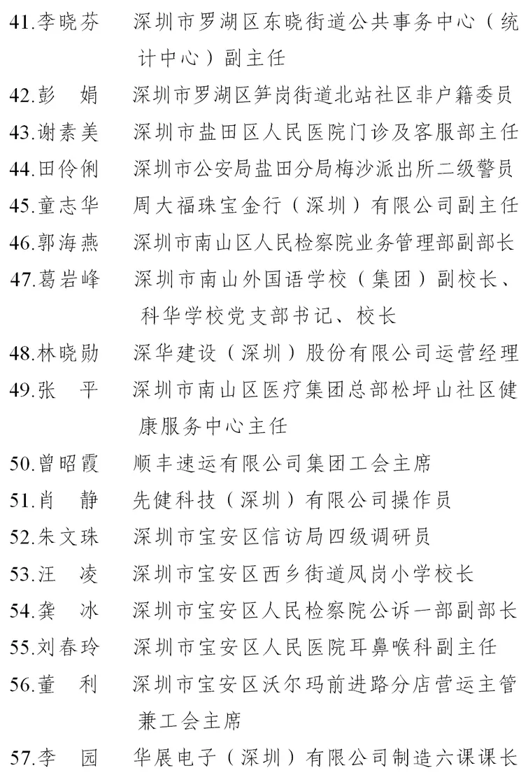 二、深圳市五一巾幗標(biāo)兵名單