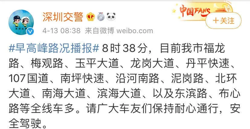 另外還有粉絲反映清平高速、南坪快速、泥崗路及福龍路、北環(huán)大道、濱海大道……全都存在車(chē)多緩行的現(xiàn)象,橫跨各區(qū)的主要交通干道幾乎都在堵堵堵,無(wú)一幸免。