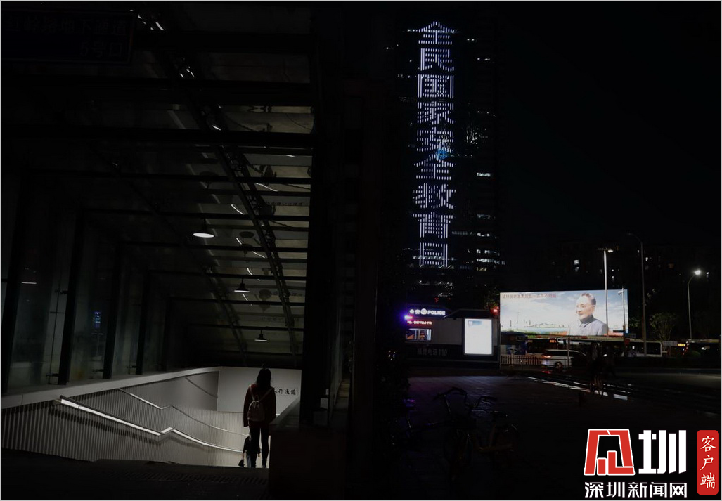 另一個角度的京基100,建筑外體亮出“41全國國家安全教育日”字眼。